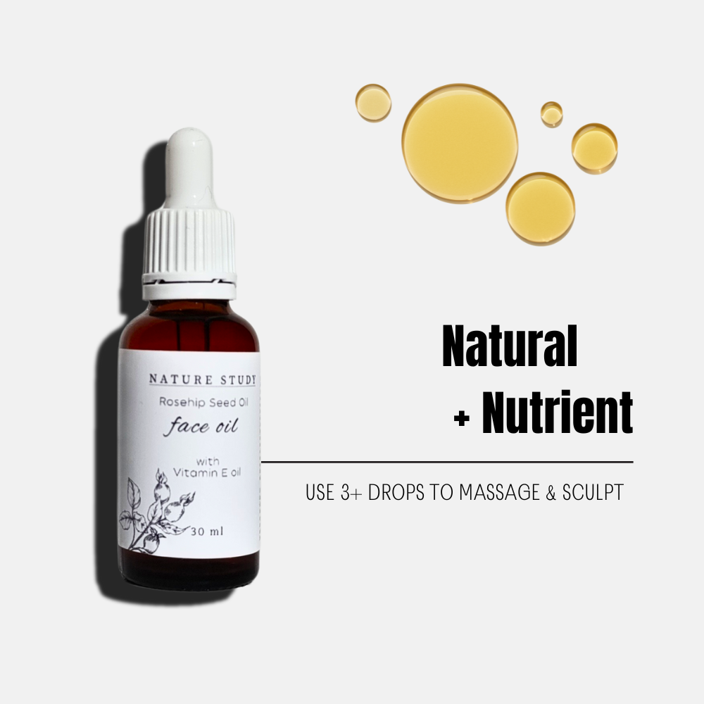 100% Organic Rosehip seed oil and Vitamin E oil Excellent for treating acne-prone, dry/dull or inflamed skin. Includes protective antioxidants to repair and protect while high Vitamin C content promotes hydration. Non-greasy & non-comedogenic.